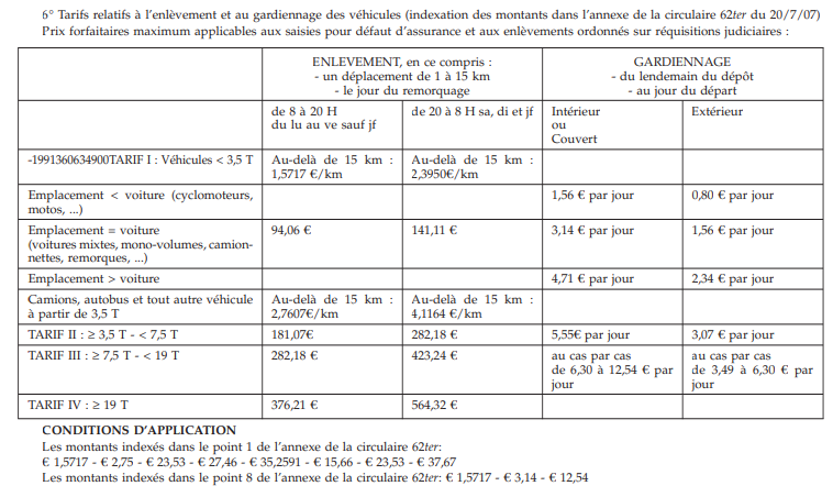 Les tarifs repris dans cette circulaire sont hors T.V.A.